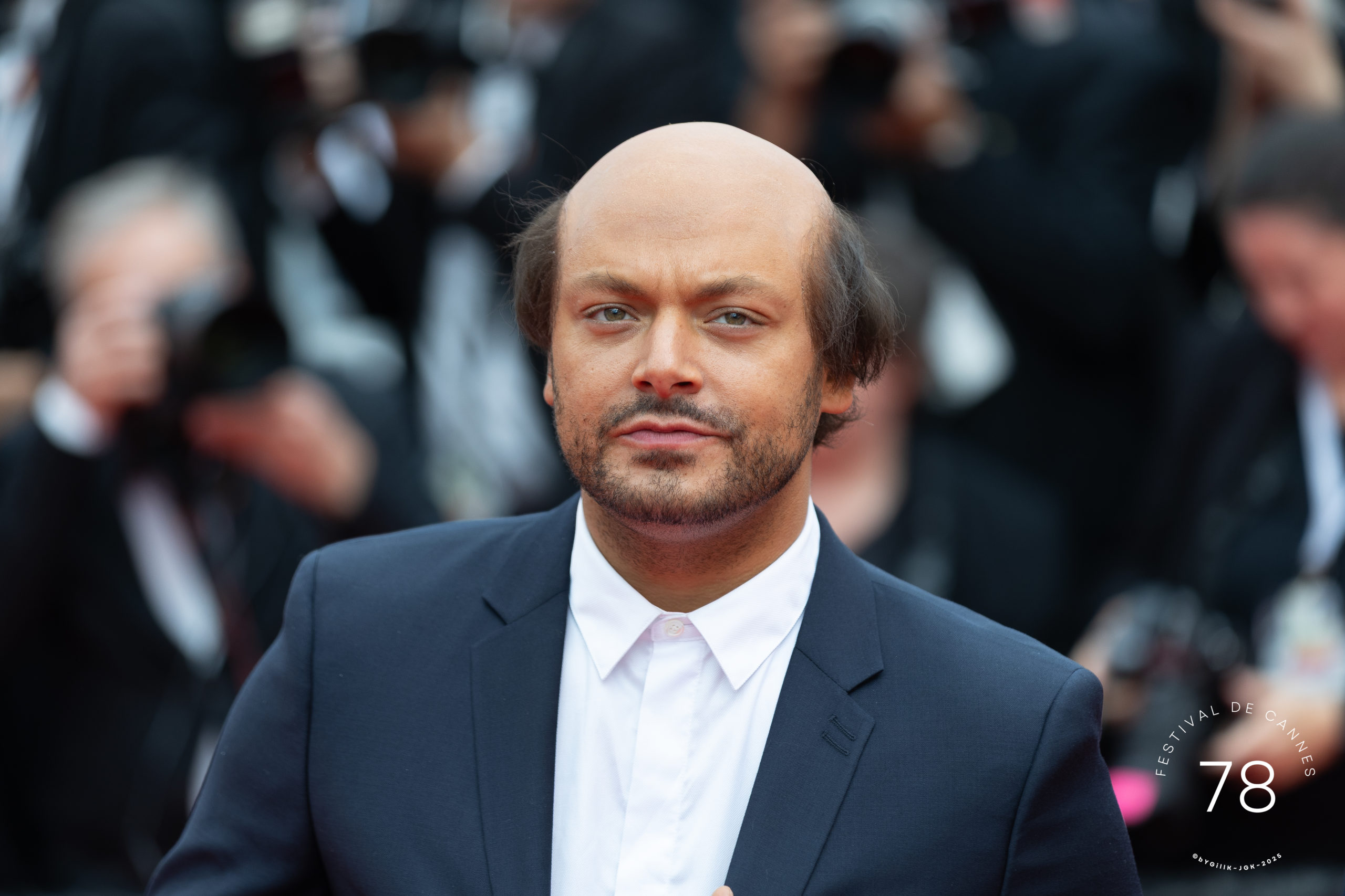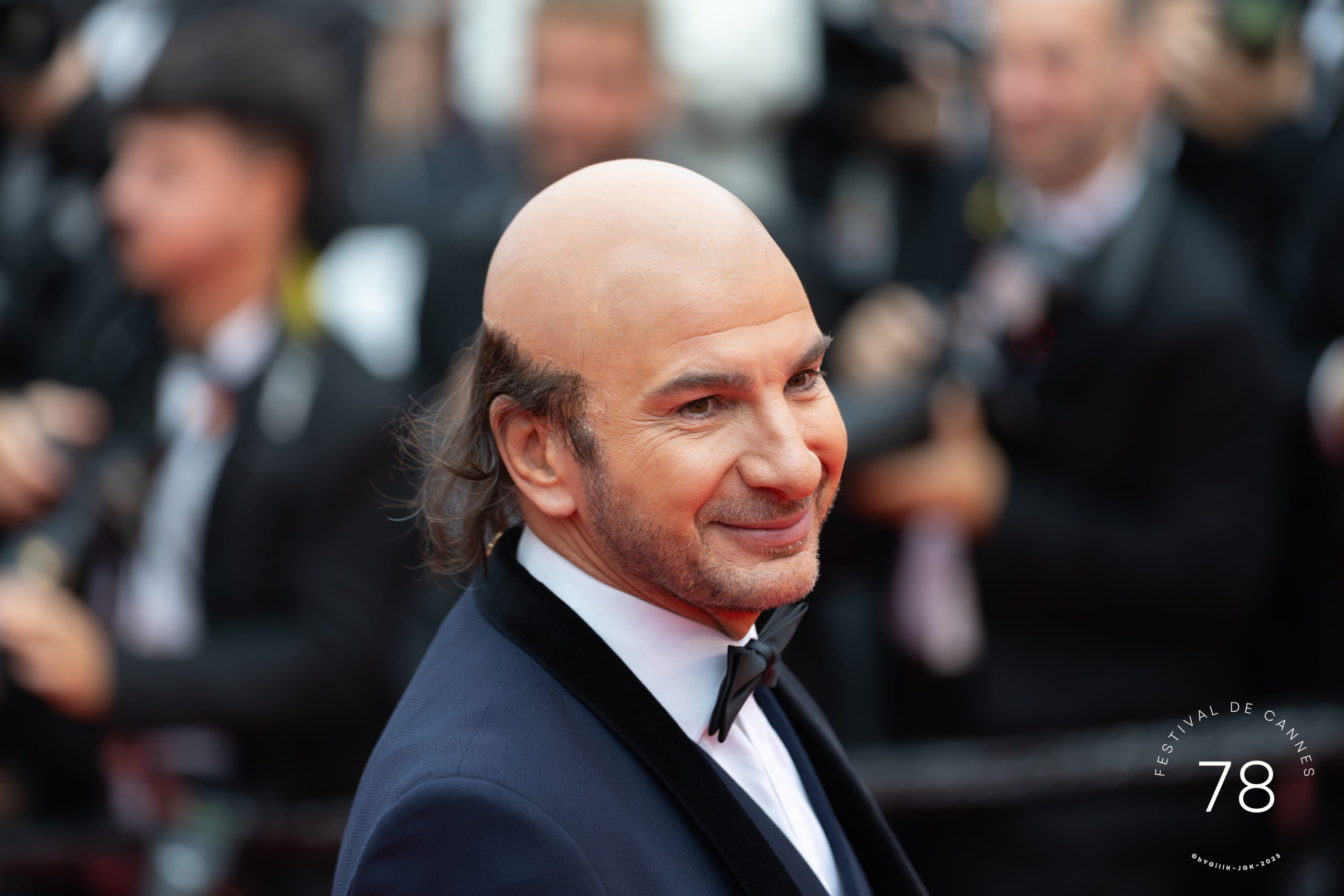 Ce début de soirée a été placé sous le signe de l’humour avec l’arrivée de 2 chauves hilares, tapant la pause sur le red carpet : Kev Adams et Michael Youn. Pourquoi ce port de postiches du pire effet ? Surprenant à première vue, ce happening est une façon audacieuse de présenter leur nouveau film, ode aux chauves, qui s’intitule : « Comme un œuf ».