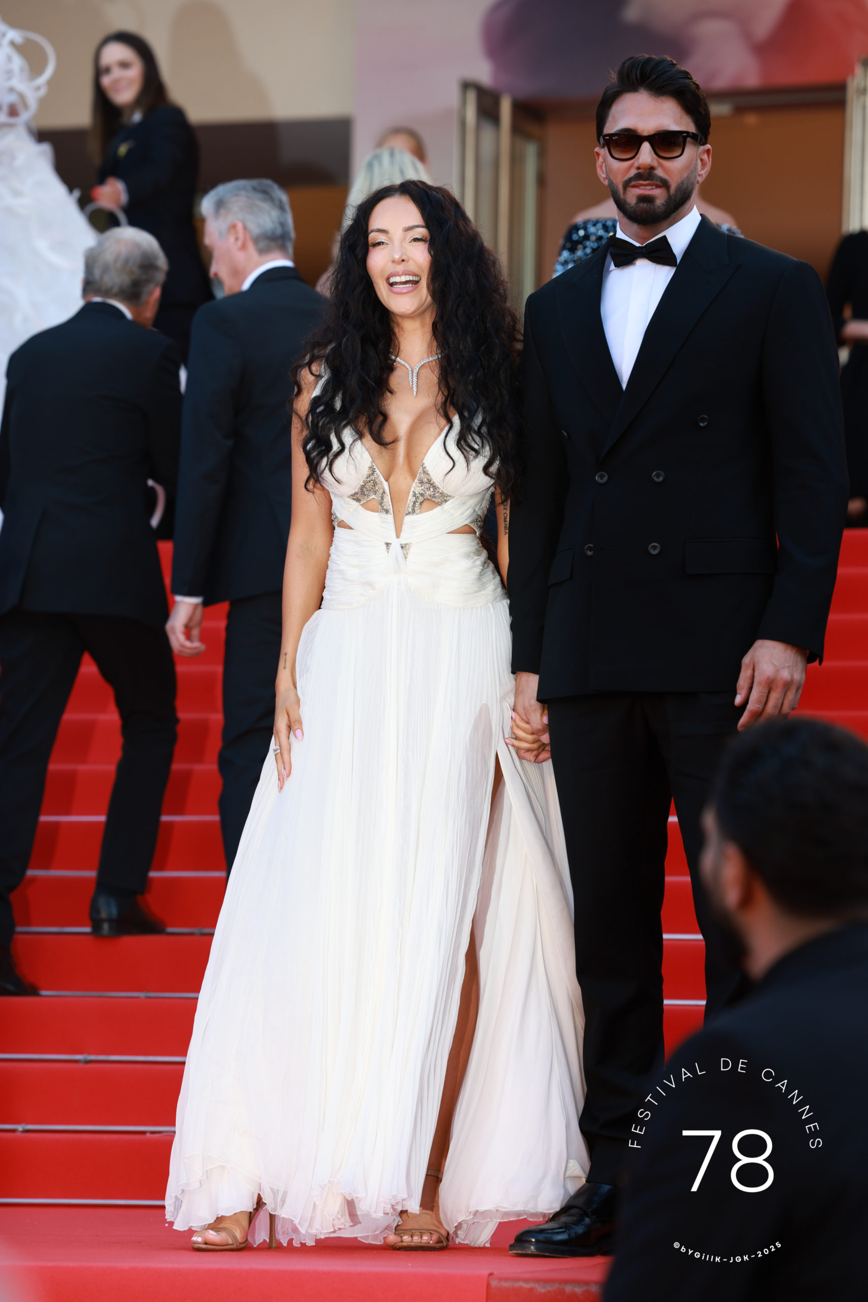 Bien que son transfert depuis les Émirats arabes unis, où elle réside depuis plusieurs années, ne soit pas bien passé la veille, puisque ses bagages à l’aéroport de Nice s’étaient égarés, Nabilla a quand même animé la montée en improvisant des pas de danse avec son coiffeur, Paul Duchemin. Entre deux pas de danse, il lui a même fait une mini-retouche !