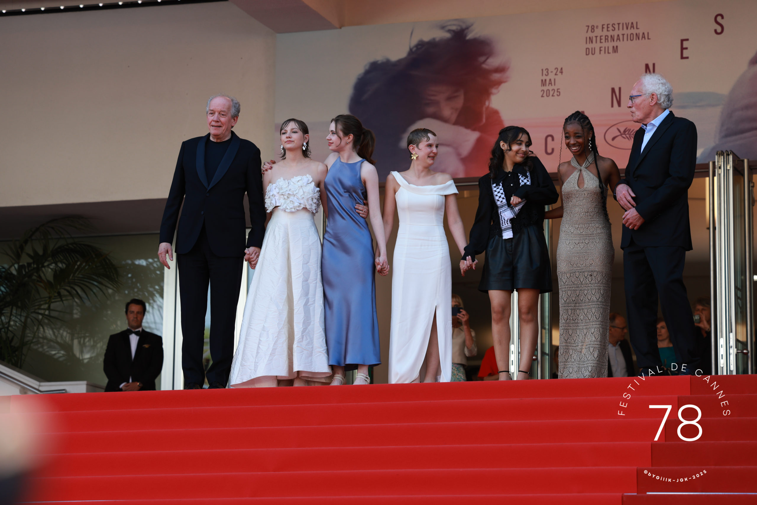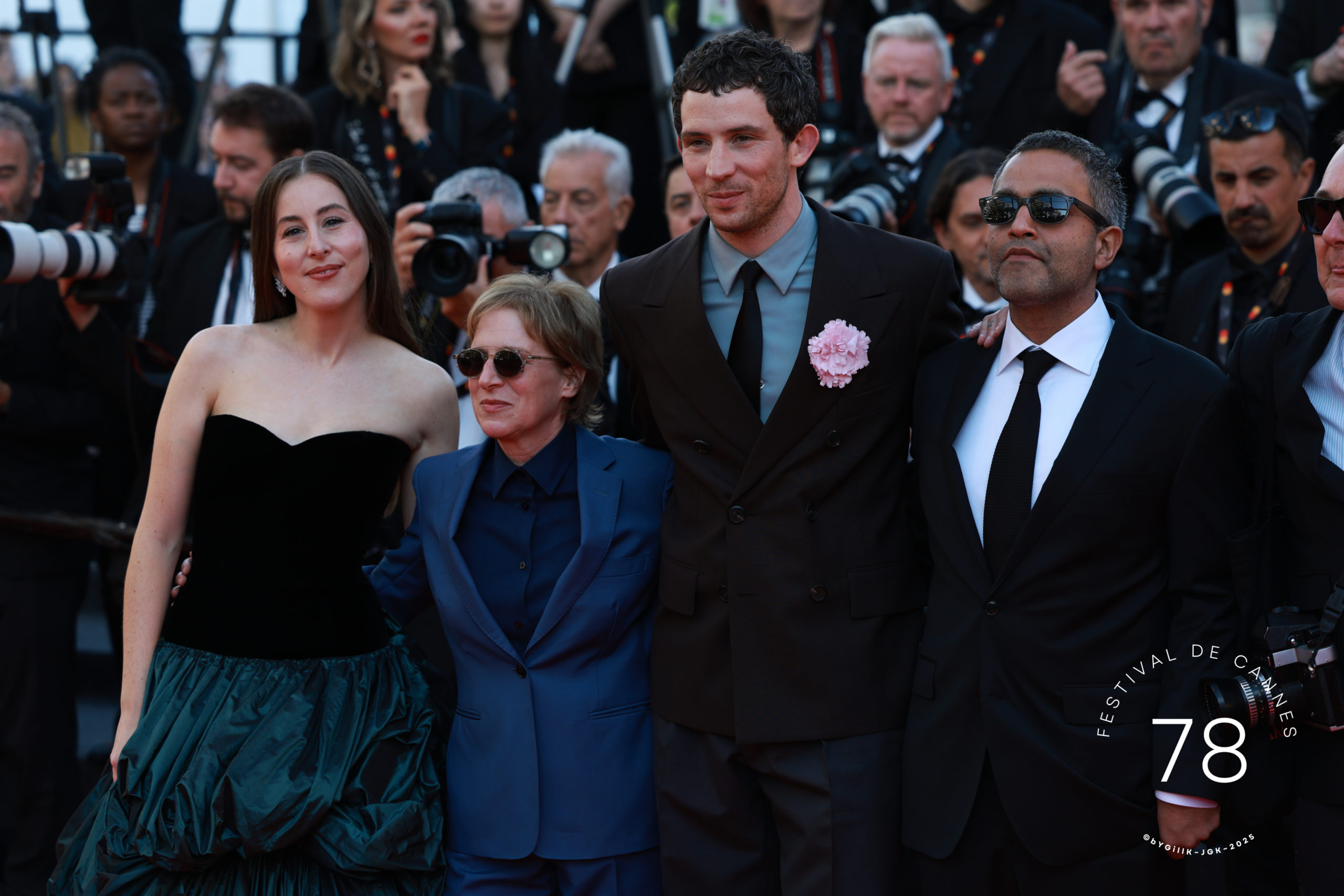 C’est la seconde fois que la réalisatrice foule le tapis rouge cannois, après avoir présenté Showing Up en 2022. L’acteur Josh O’Connor a fait sensation sur les marches dans son costume décoré d’une fleur rose. L’acteur était accompagné d’Alana Haim, sublime en robe longue vaporeuse. Quelques minutes plus tard, les sœurs de l’actrice, Este et Danielle, ont monté elles aussi les marches pour la soutenir.