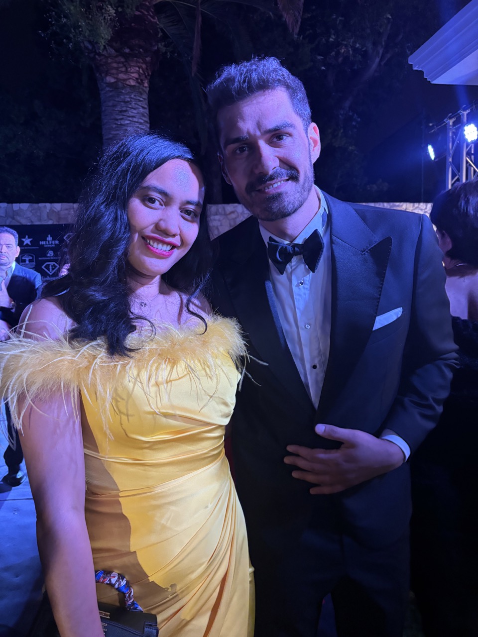 Le Festival de Cannes se vit aussi dans les soirées organisées à Super Cannes. Esther et le producteur-scénariste, Lorenzo Lello Carvelli, instigateur de la soirée Scarface à venir…
