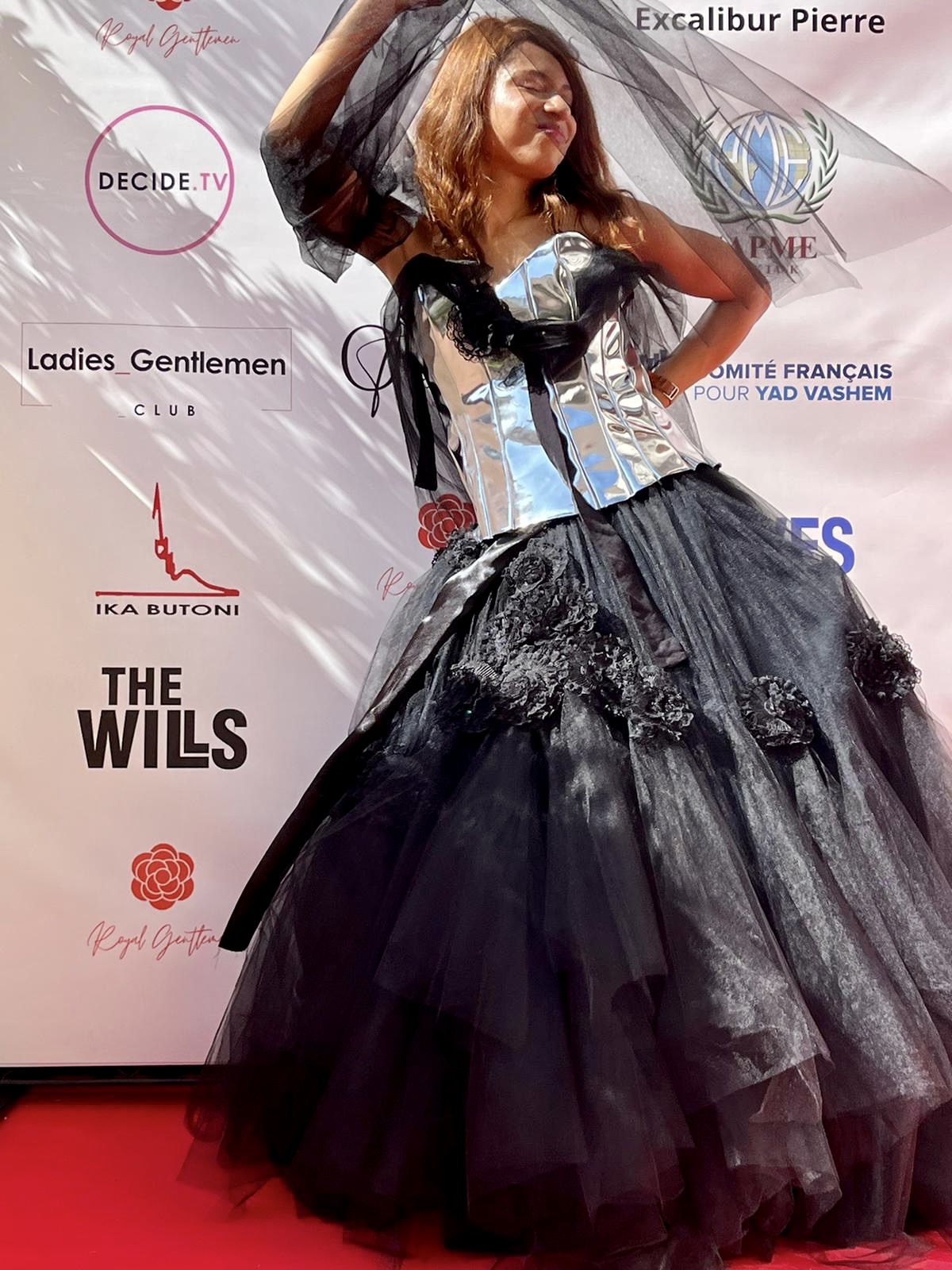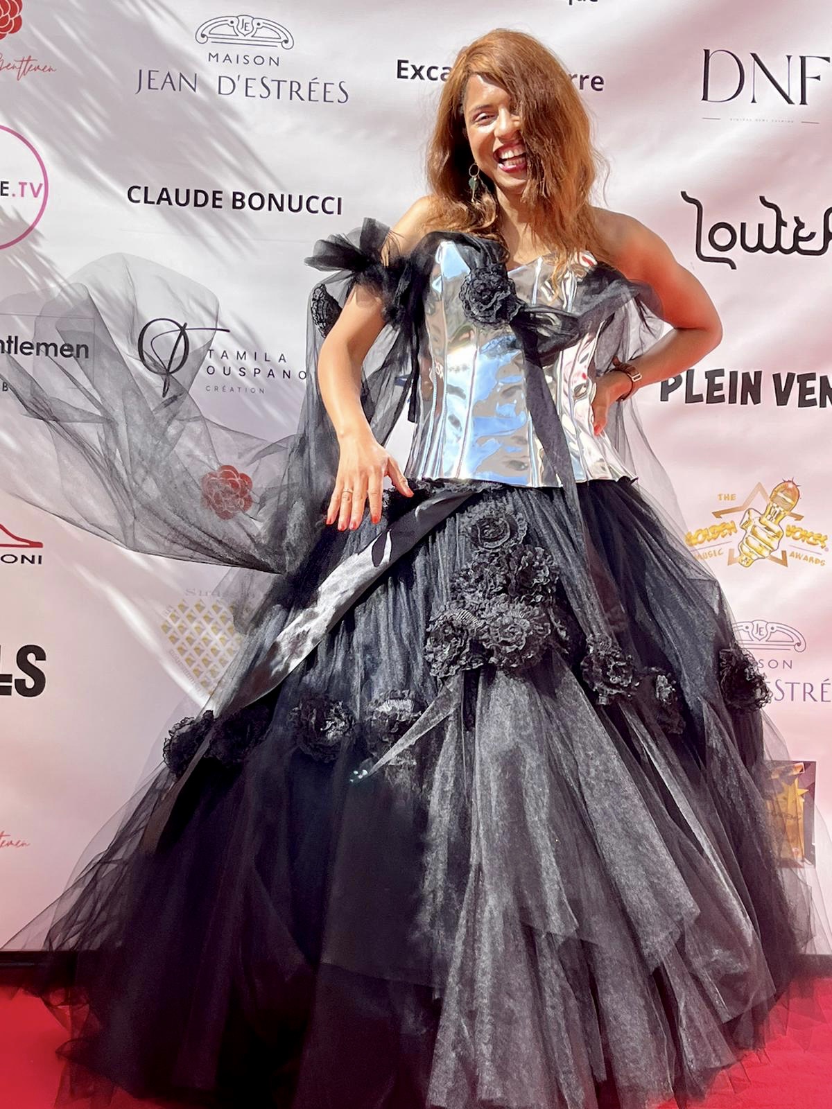 Pour rehausser le côté rock’n’roll et glam de ma personnalité, Thierry PIETU me conseille d’essayer le corset métallique, lacé dans le dos, et de le combiner avec la jolie jupe noire en tulle. Le rendu très « cinégraphique » est exceptionnel. Bluffant, comme vous pouvez le voir sur les photos et vidéos de mon compte Insta. Loin de me sentir alourdie, trop apprêtée ou plus petite que je ne le suis, les matériaux utilisés sont légers et n’entravent en rien la précision de mes mouvements. Au contraire, ceux-ci sont encore plus graciles, et mués par un désir de sensualité, en osmose avec la matière. Les créations de Thierry PIETU me font sentir à la fois femme glamour grâce au corset qui rappelle les créations de Jean-Paul GAULTIER et conquérante. Pour parachever l’ensemble, l’attachée de presse du styliste, Nausica BACIU, me propose de me faire maquiller par la make-up artiste spécialisée dans les événements de luxe Shailza.