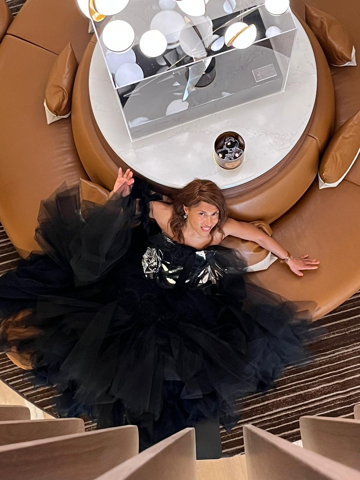 C’est au Pavillon Royal de l’hôtel Barrière Le Gray d’Albion, à Cannes, que je rencontre le styliste Thierry PIETU. Il est invité par le 76ème Festival de Cannes pour habiller les actrices, mannequins, influenceuses et autres personnalités publiques internationales, qui seront immortalisées sur le red carpet. Installé au 1er étage de l’hôtel, son show-room regorge de robes en tulles fluorescentes, de corsets métallique, broderies de dentelles de Calais…Toutes les créations PIETU COUTURE sont créées sur-mesure selon le principe du upcycling (recyclage des matériaux pour leur redonner une seconde vie)